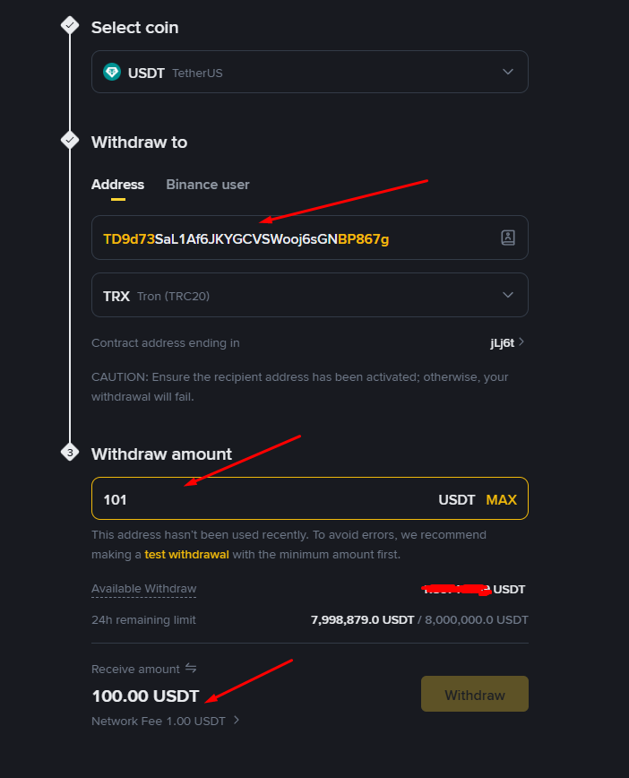 Notice how the deposited sum is 101 USDT. This means you get 100 USDT on the Roobet account. The gas fee in this case is 1 USDT.